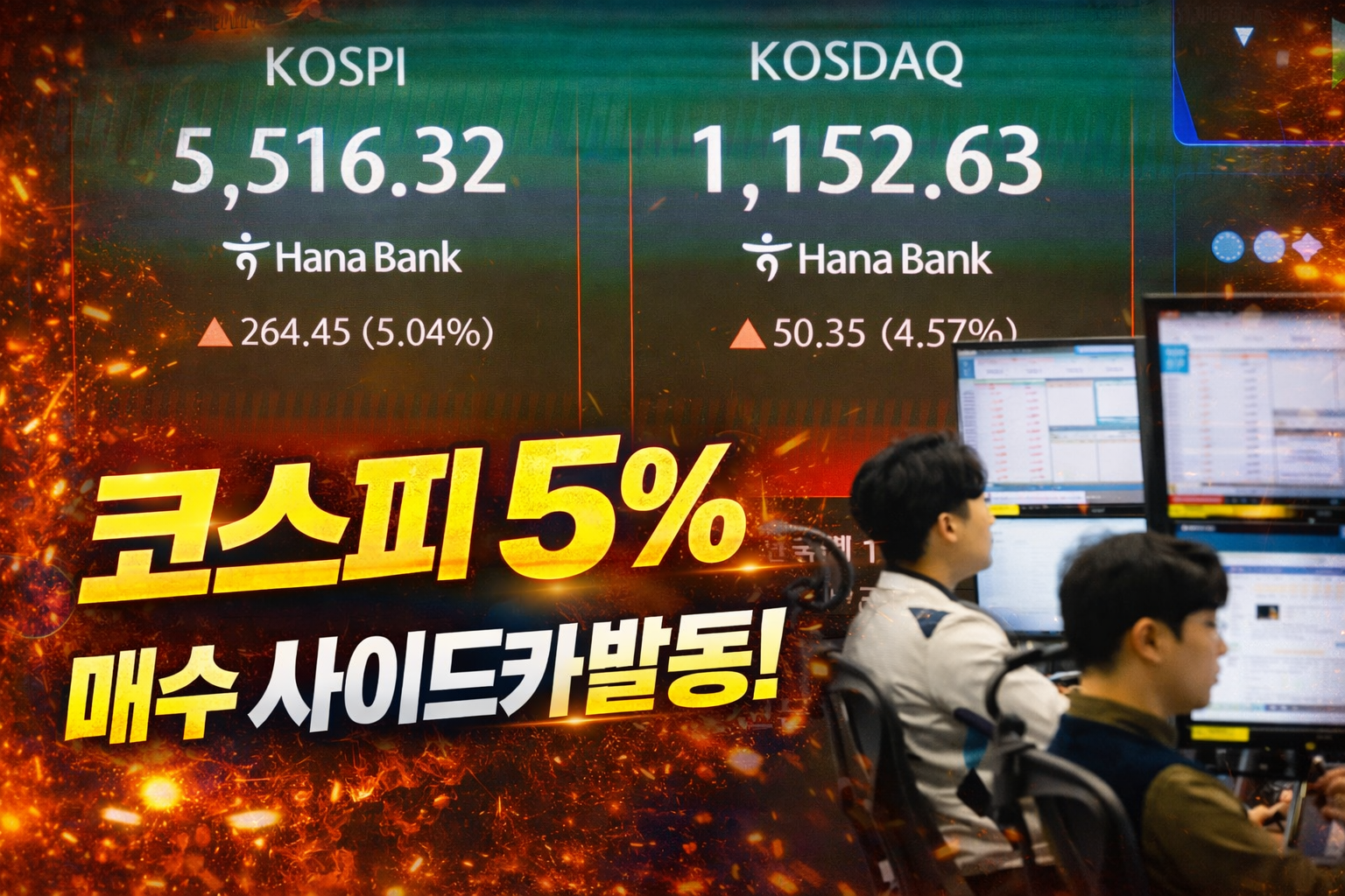 어제는 폭락, 오늘은 폭등…코스피 5% 급등하며 매수 사이드카 발동