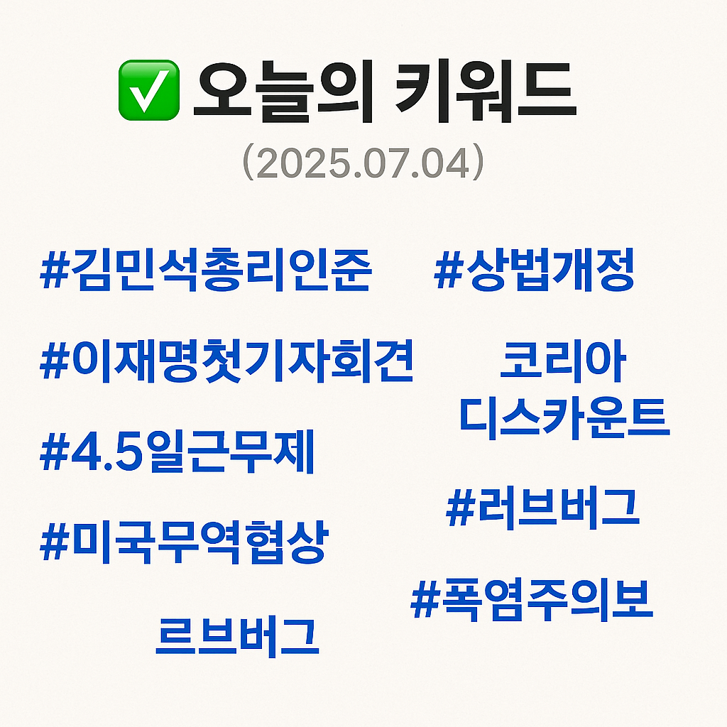 📰 [7월 4일 오늘의 주요뉴스] 총리 인준·첫 기자회견·미국 협상…폭염 속 서울 날씨까지 총정리