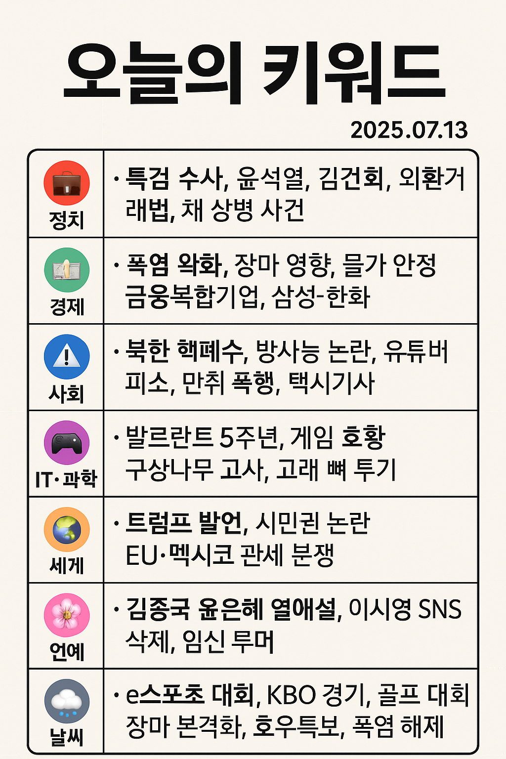 | 📰 2025년 7월 11일 오늘의 뉴스 총정리 (8) | 2025.07.12 |