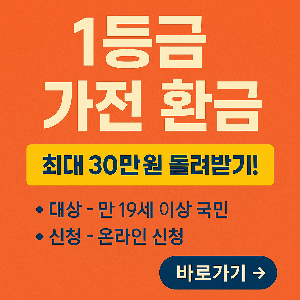 - ✅ 1등급 가전 구매 → 10% 환급 (최대 30만 원)