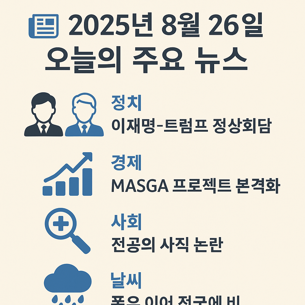 📰 2025년 8월 26일 오늘의 주요 뉴스 정리 – 정치, 경제부터 날씨까지 한눈에