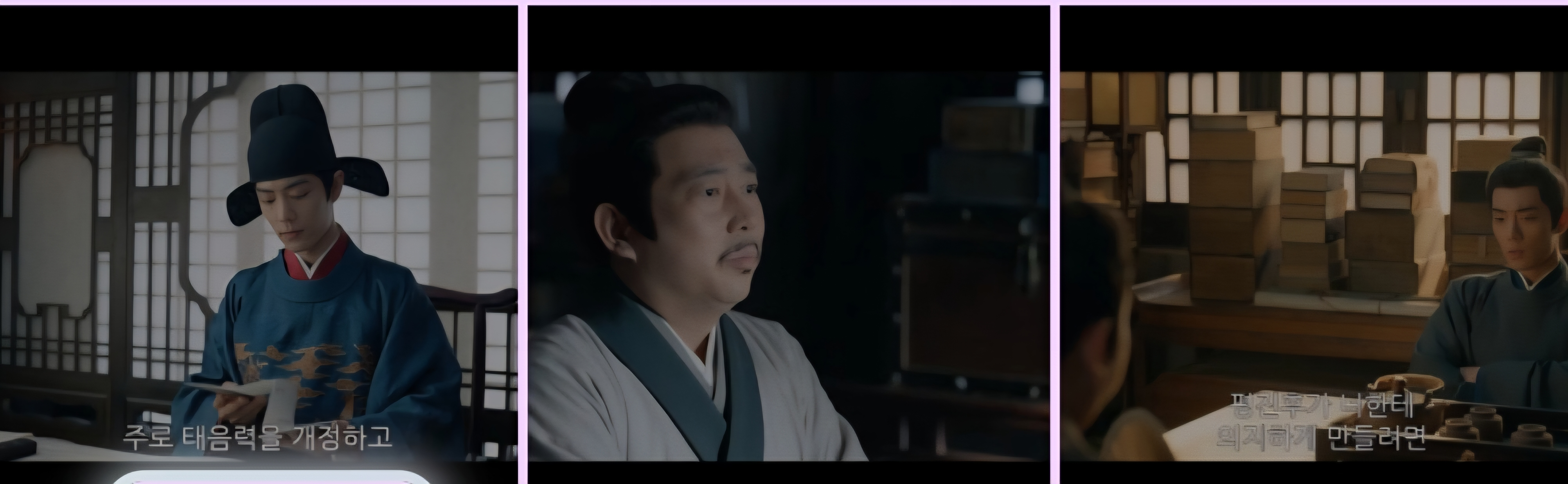 장해는 장로은을 향해 직접 나서서 장지행을 보필하겠다는 뜻을 밝힙니다. 이 선언은 그저 정치적 입장을 표명하는 것을 넘어, 신뢰를 끌어내기 위한 전략적 행동으로 느껴집니다. 동시에 고명은 장해에게, 장로은의 신뢰를 얻기 위해서는 ‘다른 인물에 대한 이해’가 필요하다고 일러줍니다. 이는 장해가 향후 더욱 복잡한 정치적 관계 속에서도 균형을 잡아야 함을 암시하는 대목입니다.