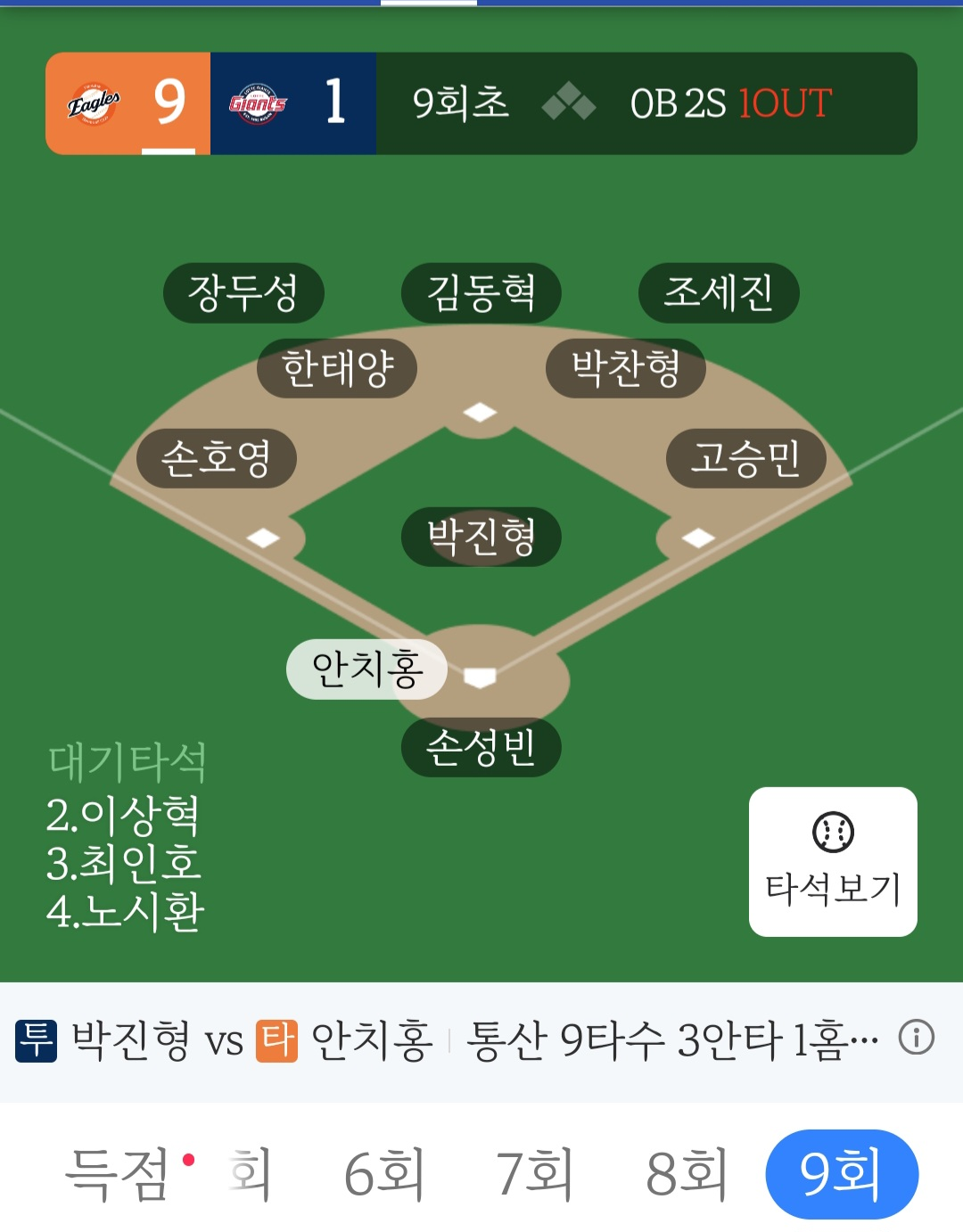 한화 9 : 1 롯데 () — 사직 라이브 매치 리포트